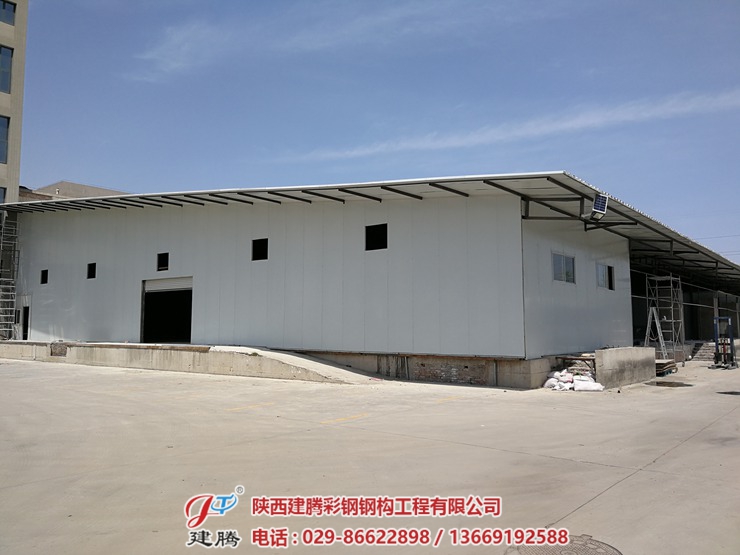 位于尚稷路5168號的陜西振彰食品有限公司的2400㎡的彩鋼庫房由我公司承建!現在在建中,預計五天內完工!